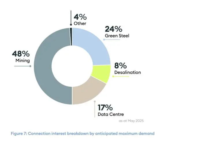 “The total potential increase in maximum demand, resulting from the new combined load of all 37 of these customers, is over 15,000 MW. This is equal to nearly five times the maximum demand experienced in South Australia during 2024-25.”