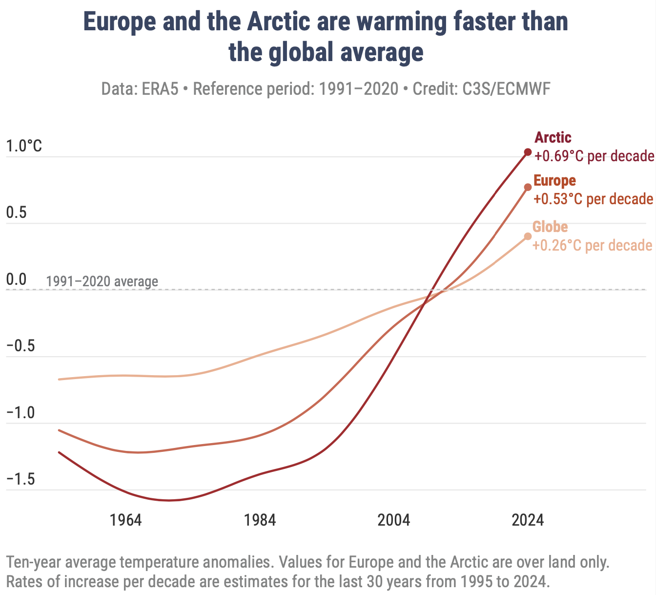 - Parts of Europe extend into the Arctic, the fastest warming region on Earth.