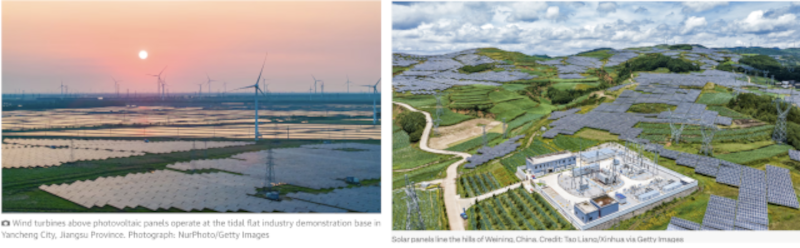The photos below (left and right) suggest part of the reason why China is making the transition from fossils to renewables at unprecedented speed: