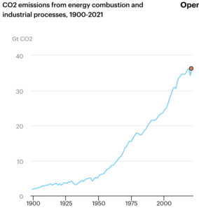 During its first year, the Covid epidemic caused global CO2 emissions from energy and industry to fall from 36.1 gigatonnes (Gt) in 2018 and 2019 to 34.2 Gt in 2020. But 2021 saw emissions soar to their highest level ever, 36.3 Gt. The largest ever annual decrease in the actual tonnage of CO2 emissions in 2020 was followed by the largest ever annual increase in 2021. Coal accounted for 40 per cent of the CO2 emissions growth in 2021 and global coal emissions are now at an all-time high.