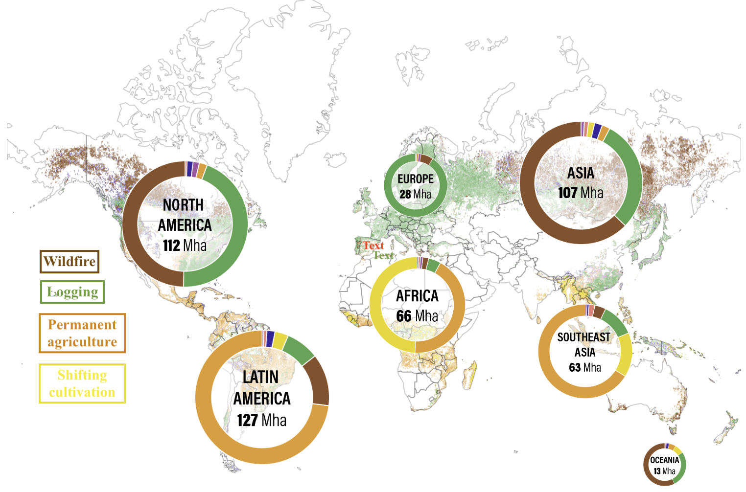 Across the regions of the world, the causes of the loss vary greatly, as shown in the map below.