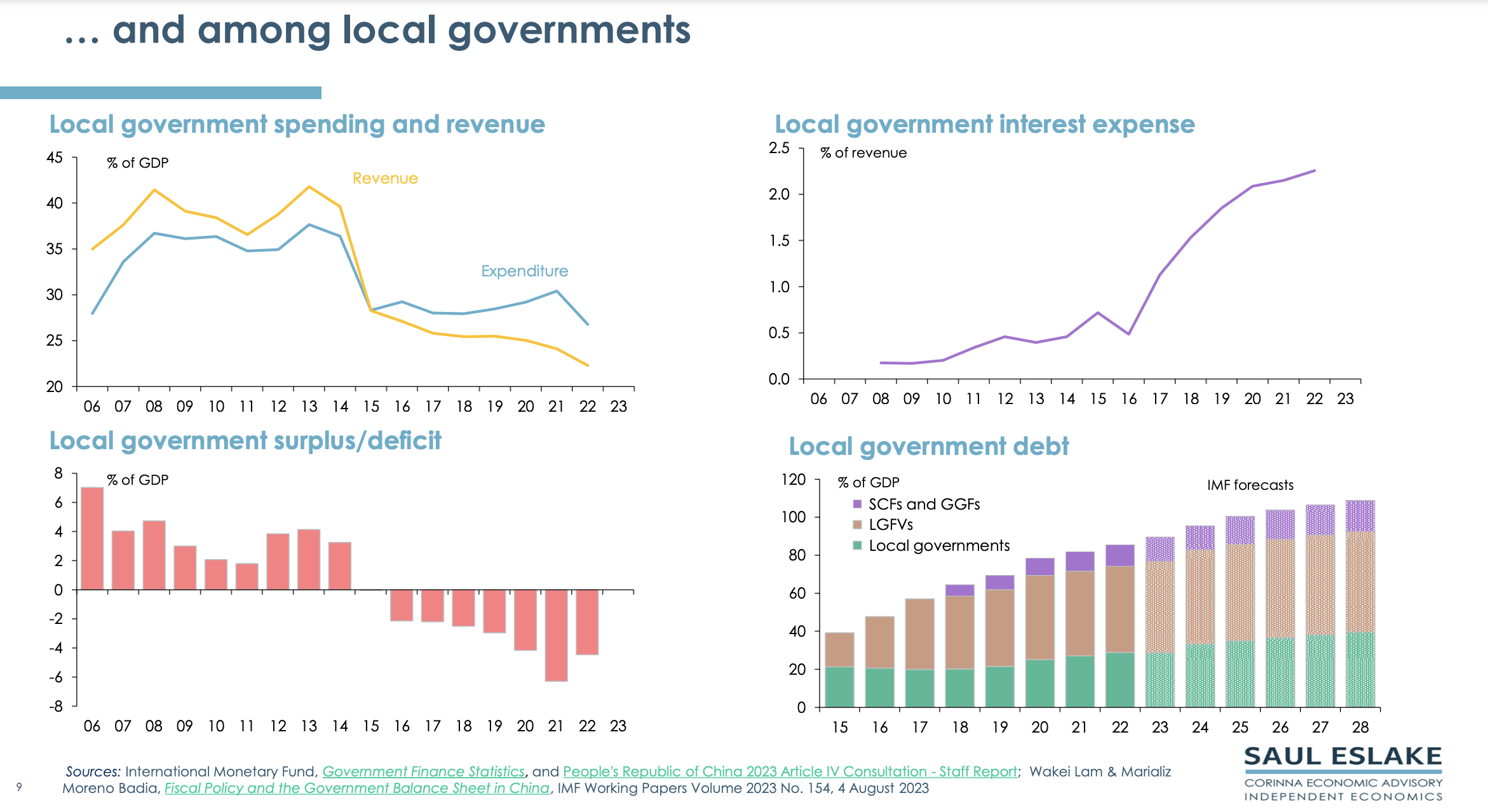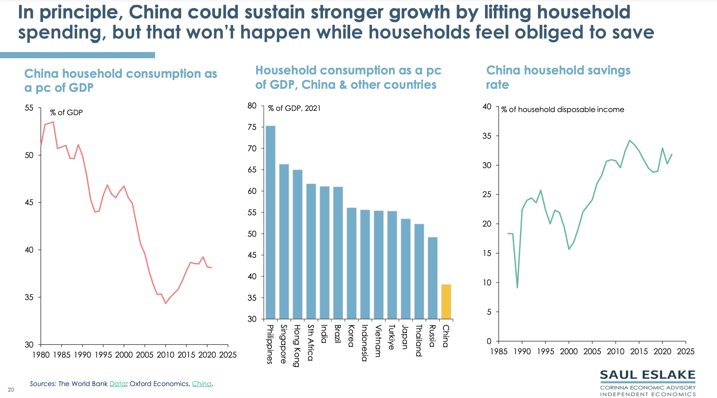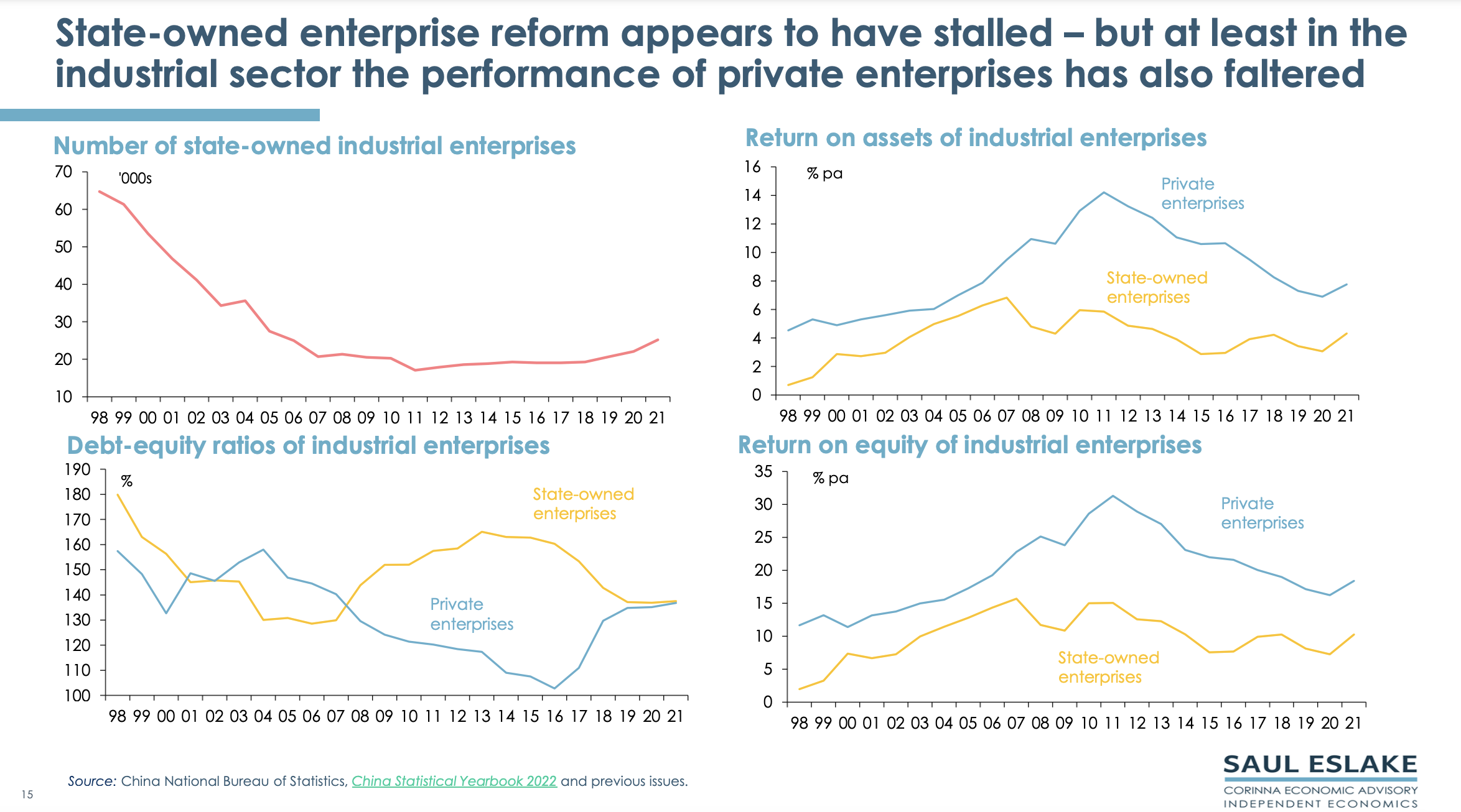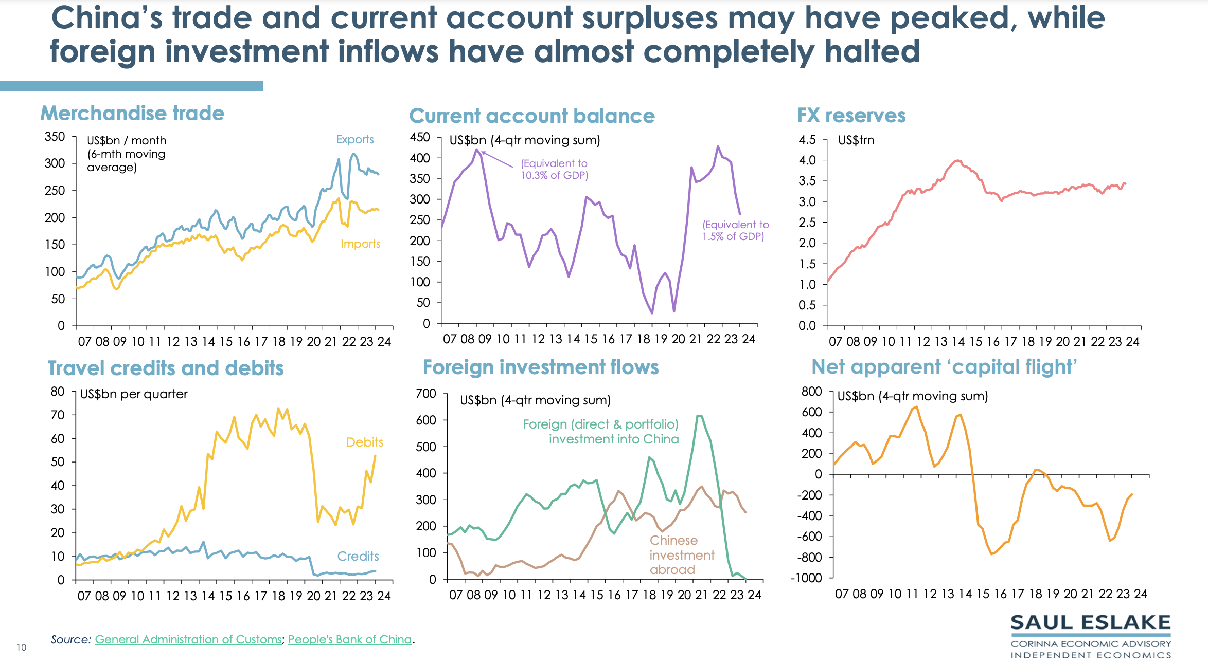 Saul’s chart pack gives a bird’s eye view of the economic challenges China needs to address. By ‘Peak China’ he does not mean that China will collapse, but that its future economic growth will be much slower than in the past.