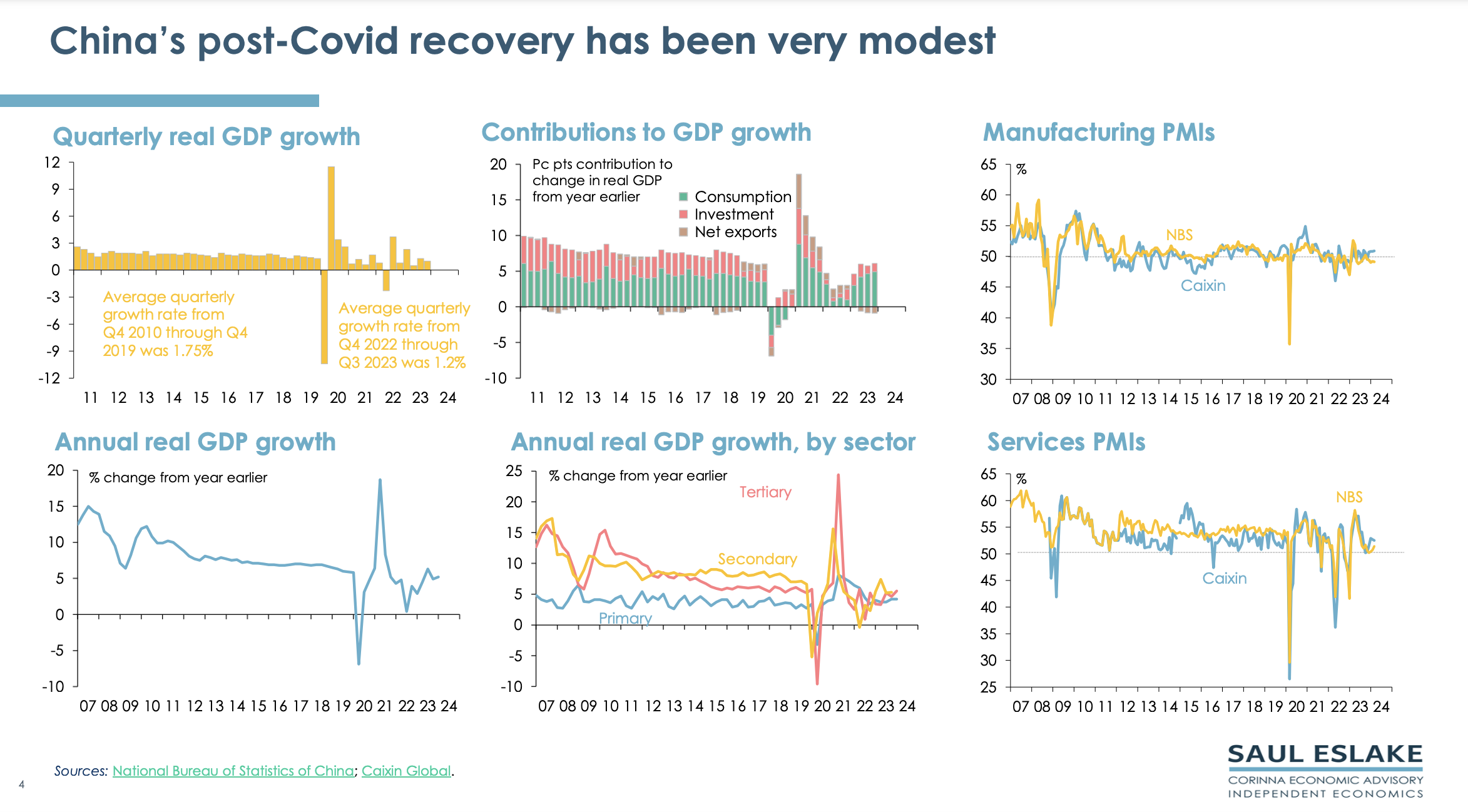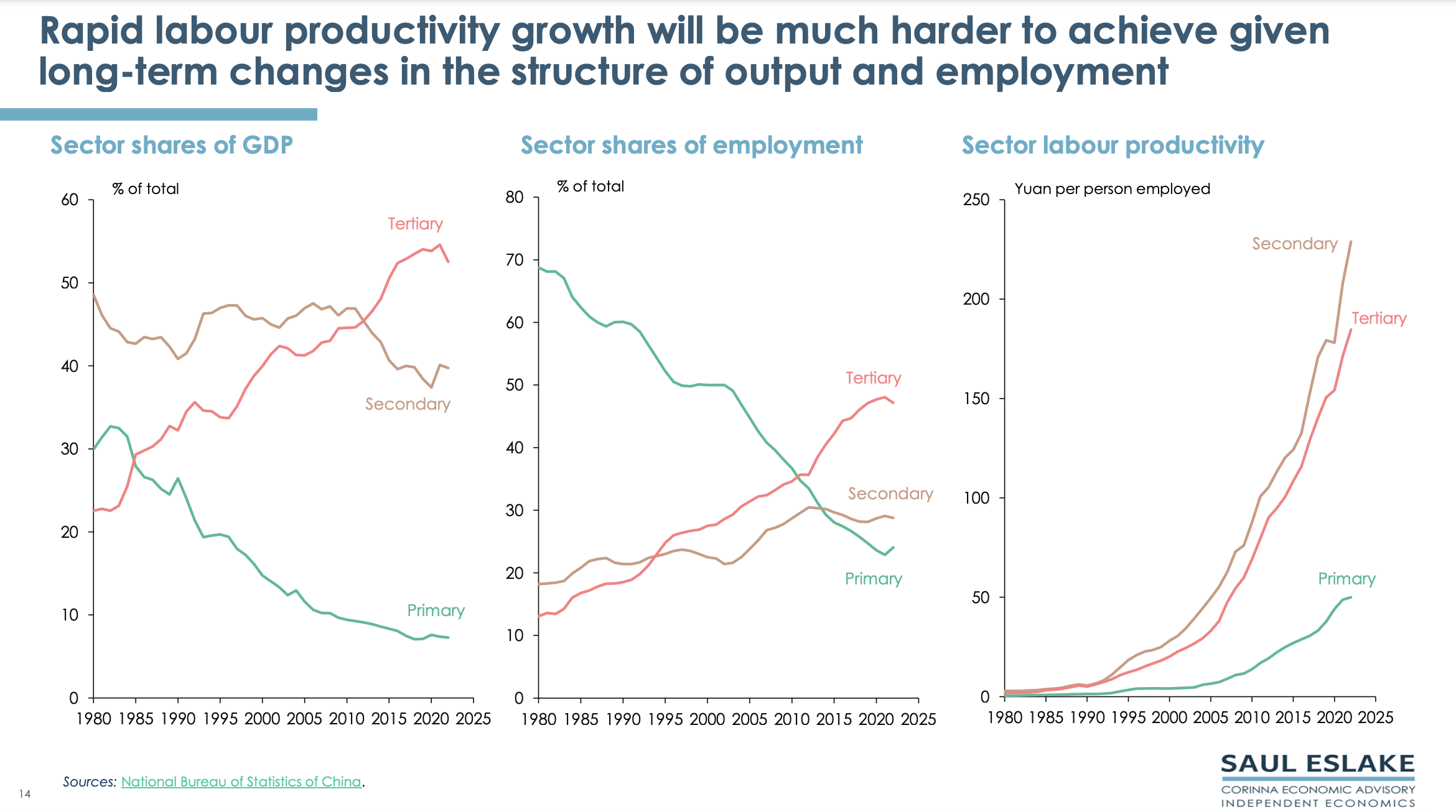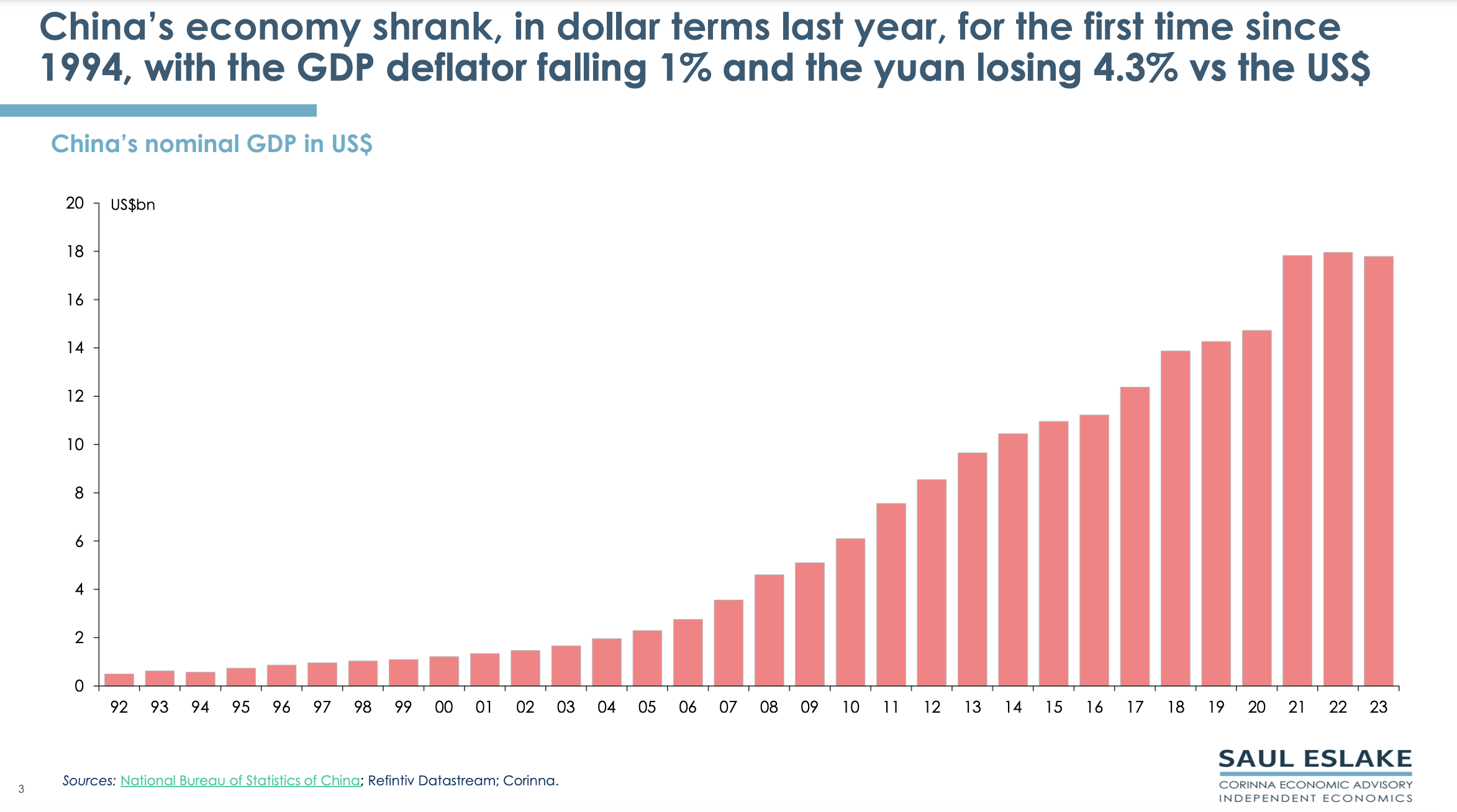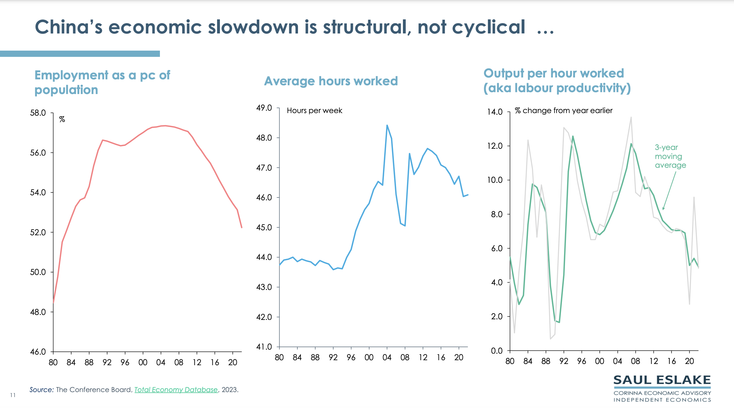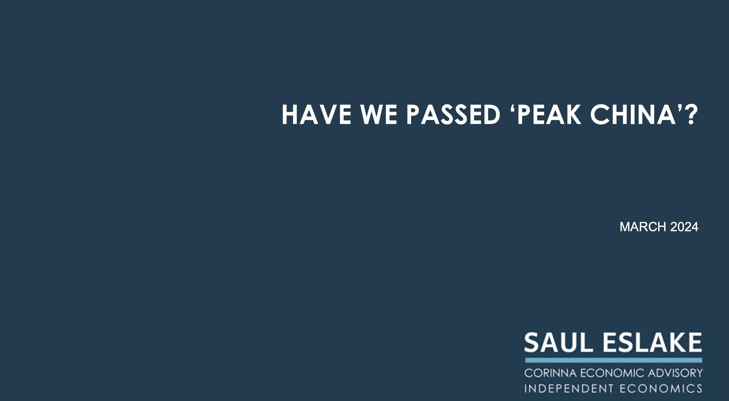 Saul Eslake, the renowned and independent economist, has updated his China chart pack which was last prepared in January 2023. The chart pack gives a bird’s eye view of the economic challenges China needs to address. By using the term ‘Peak China’, he does not mean that China will collapse, but that its future economic growth will be much slower than in the past.
