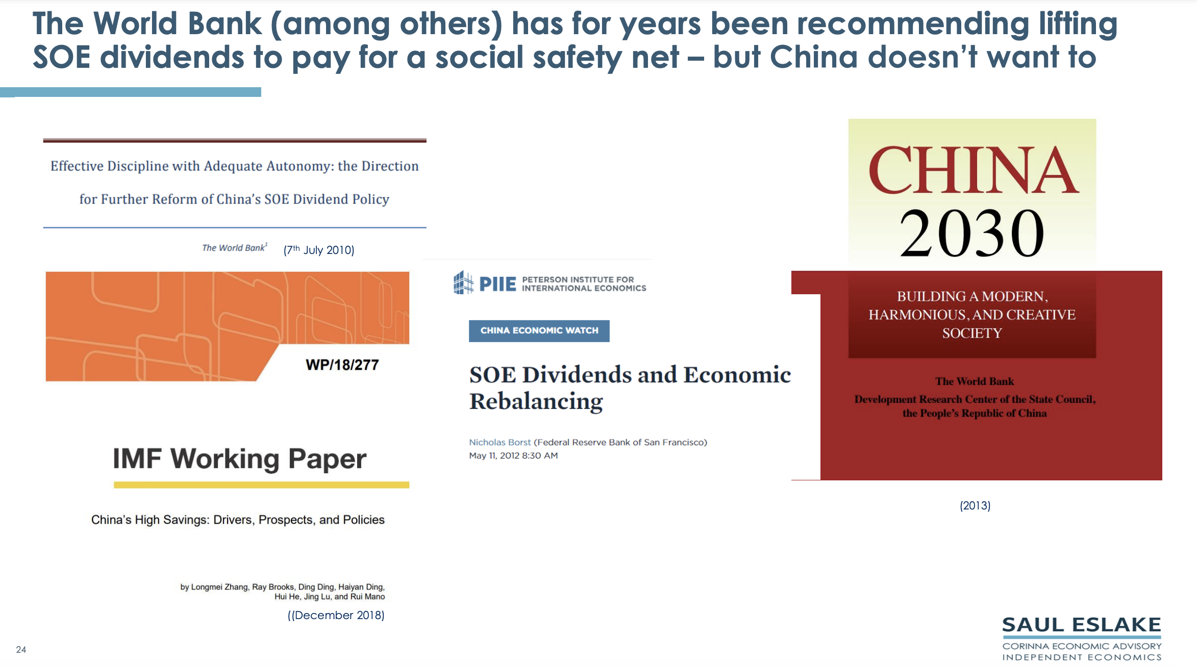 Also to rely more heavily on progressive income taxes to pay for this as well as redistribute income from the rich to the poor. And finally, to demand a higher rate of return on state owned enterprise assets so they could pay higher dividends to government to provide better social services.