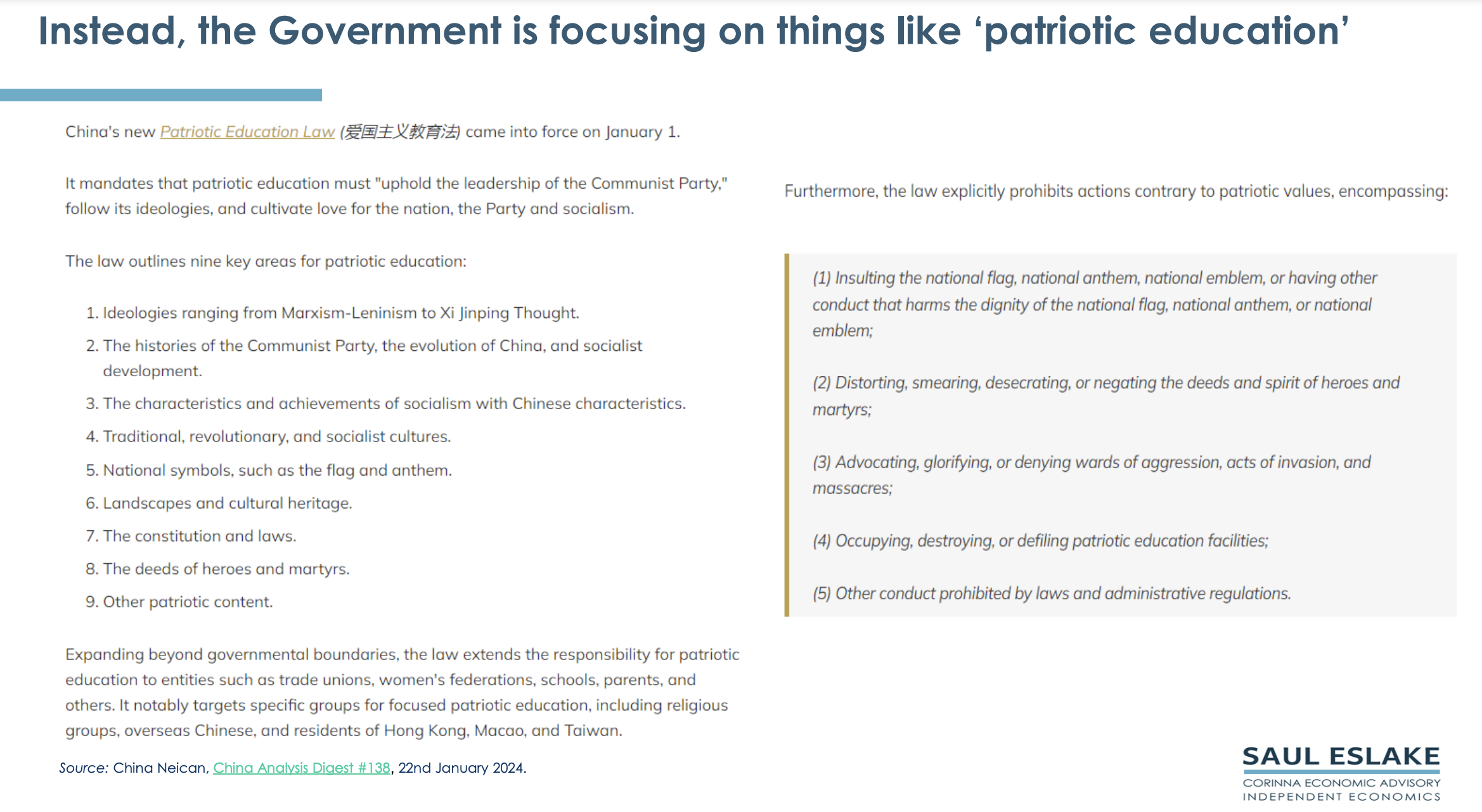 China is trying to change public behaviour by focusing on “communist and patriotic” education, rather than applying orthodox “socialist” practice such as income and wealth redistribution using the tax and welfare systems. Only by improving its social safety net will it encourage its households to unlock their high savings and lift their consumption spending to make China less reliant for its progress on insolvent property developers and increasingly protectionist foreign markets.