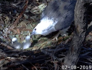 The big news this week, the news you’ve all been waiting for, is that the two White-bellied Sea-Eagle chicks in Sydney’s inner west hatched last weekend. The picture below shows them at about six days but you can watch them feed and squabble yourself at Eagle CAM.