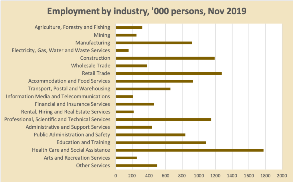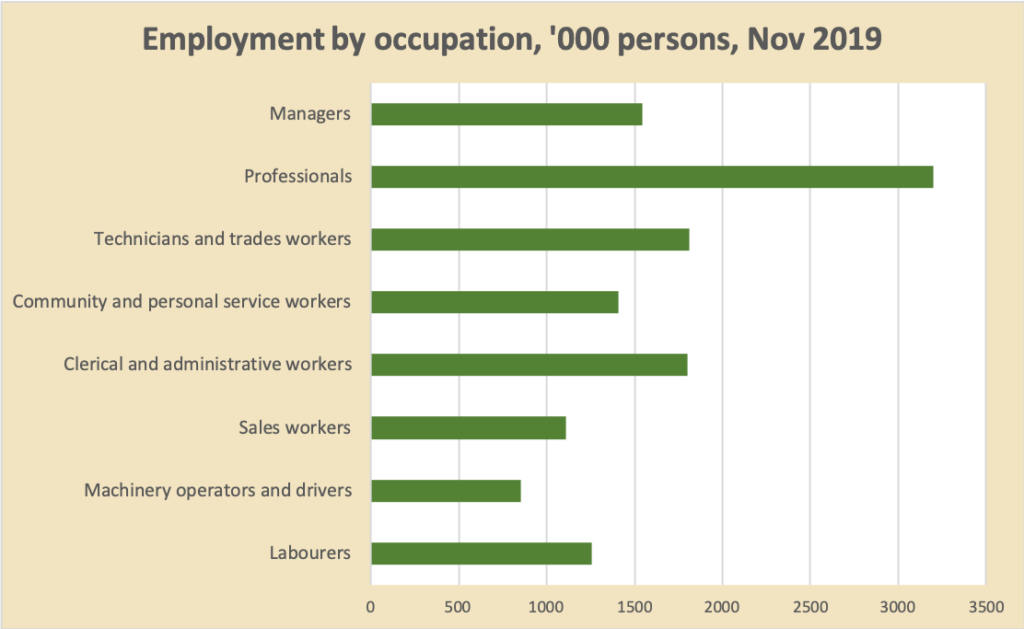 Second, by occupation – although occupation statistics, being based on self-description, are not quite so rigorous. Are there really 1.5 million Australians with the work-title “manager”?