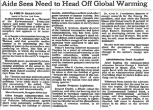 Now for a bit of climate science reporting history. The screenshot below is from the New York Times of 12 June 1986 – 35 years ago, eight years before the UNFCCC (United Nations Framework Convention on Climate Change) was established. According to the NYT, this article contains one of the earliest references in the paper to ‘global warming’.