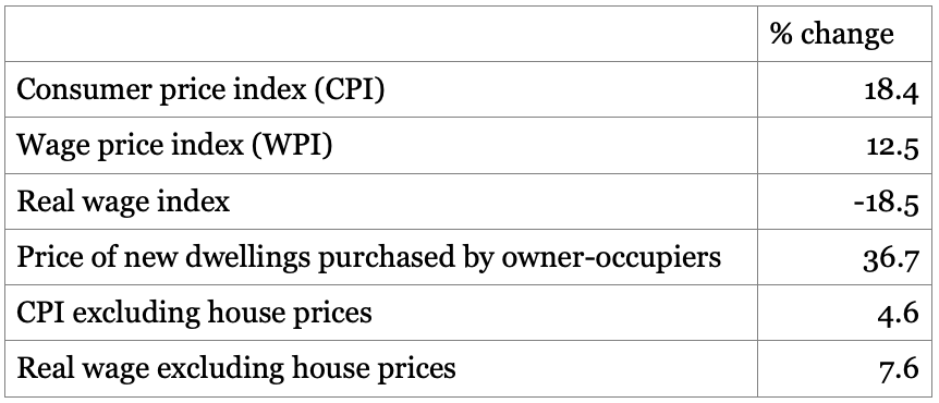 Furthermore, as Table 1 shows, while real wages (as conventionally measured) have fallen since December 2019, if the price of new dwellings purchased by owner-occupiers is excluded from the CPI, then real wages have increased by 7.6 per cent (see Table 1).
