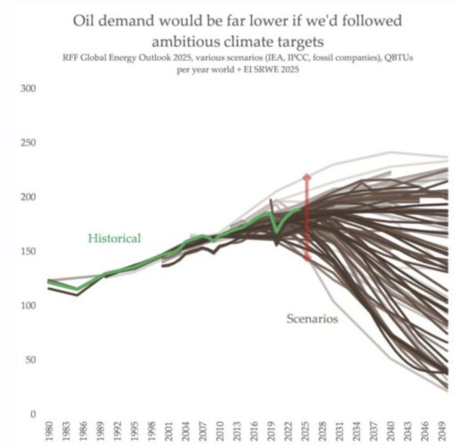 “If the world had followed ambitious climate scenarios, global oil demand would be at least 20 per cent lower than it is today – about the same volume of oil that flows through the Strait of Hormuz,” Joshi says.