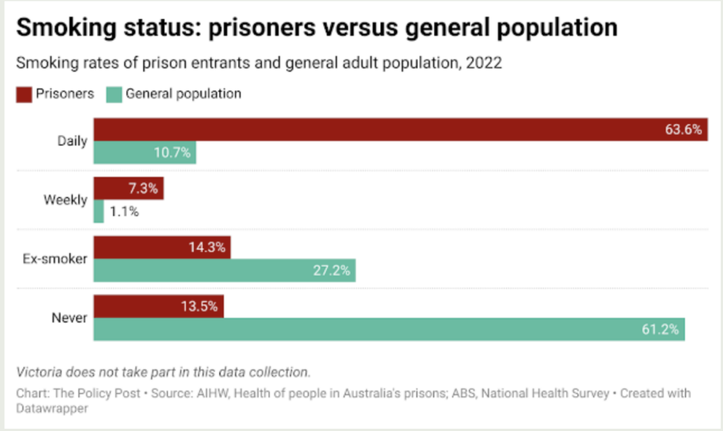 That point is confirmed by the statistics. Although pre-incarceration smoking rates are very high, the lack of access to cessation programs within prisons reveals a general neglect of the problem.