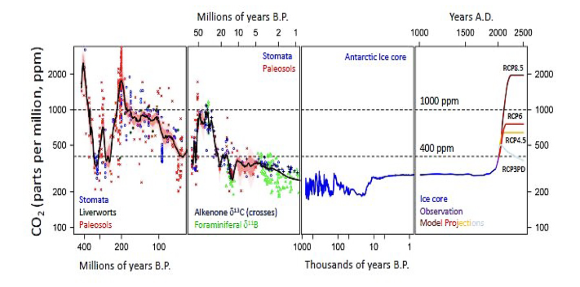 Figure 1b. Geological temperatures estimates over the past 500 million years.