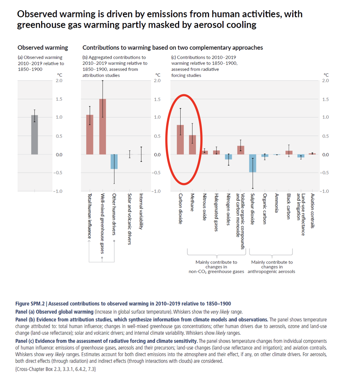 The IPCC highlighted this issue in the WG1 Summary for Policy Makers, as shown in Figure 4. Clearly, over the decade from 2010, methane contributed more than half as much to global heating as CO2, despite its much lower concentration in the atmosphere.