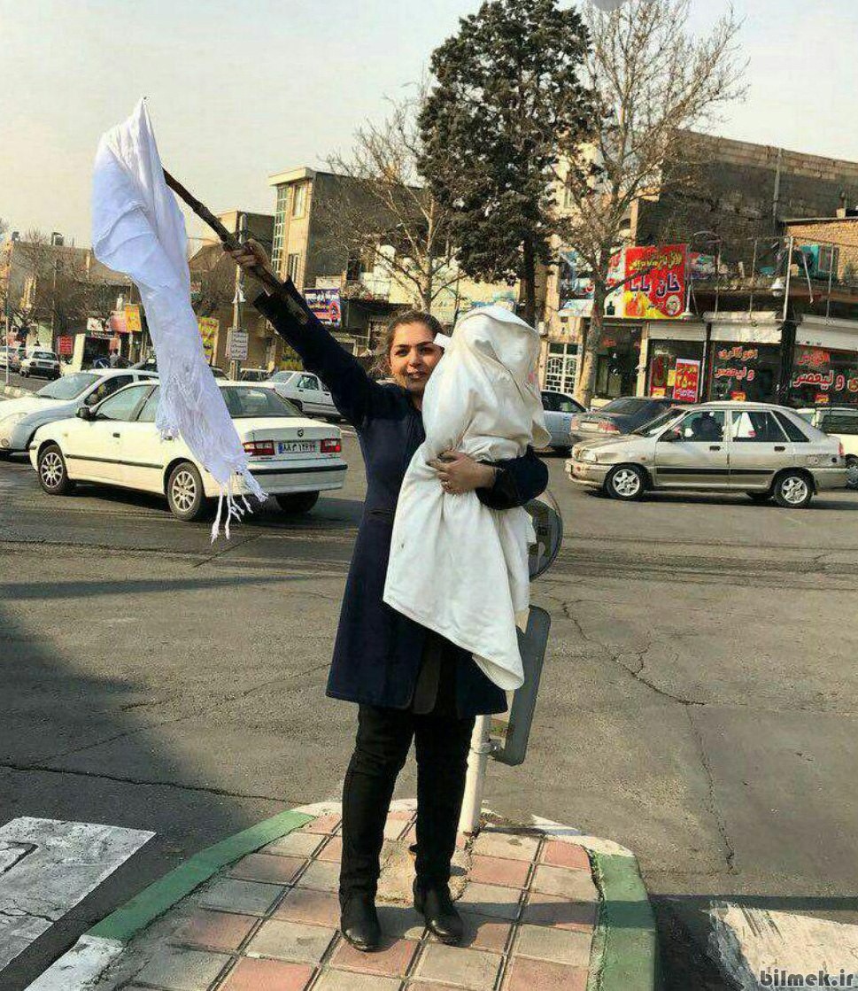 Recently Iranian women started a movement  all over the country especially in Tehran . They stand on a platform, take their scarves off and drape them over a street sign. It is in protest again the Islamic dress code . In Tehran, 28 women have been caught and gaoled so far . The first woman arrested did it in Tehran’s Revolution Street so they are called “The Girls of Revolution Street.”  See photos.